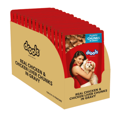 Drools Real Chicken and Chicken Liver in gravy offer your puppy fresh and tasty wet food at every meal.This great-tasting puppy food contains a high-quality omega 3 fatty acid to support your puppies brain & eye development. This pack contains mouth-watering flavour, so you can give your puppy a balanced diet with delicious and healthy. Your pet will love the gravy, which provides all the nutrients to fulfil your pet needs for a healthy life.
